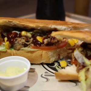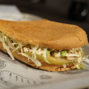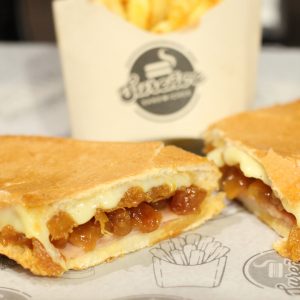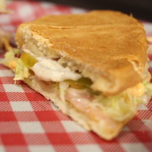 Jamón de cordero, queso crema, tomate, lechuga, salsa de ajo.